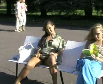 Похотливая блондинка гуляет голой по улице и доводит себя до оргазма на скамейке на глазах у прохожих.