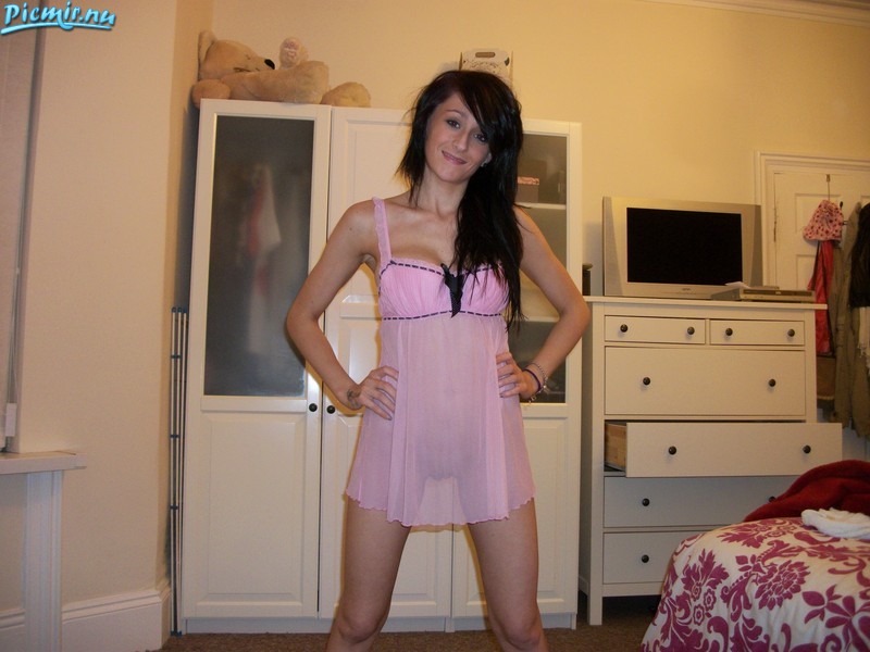 Легкая эротика от брюнетки, девушка позирует, обнажая только грудь