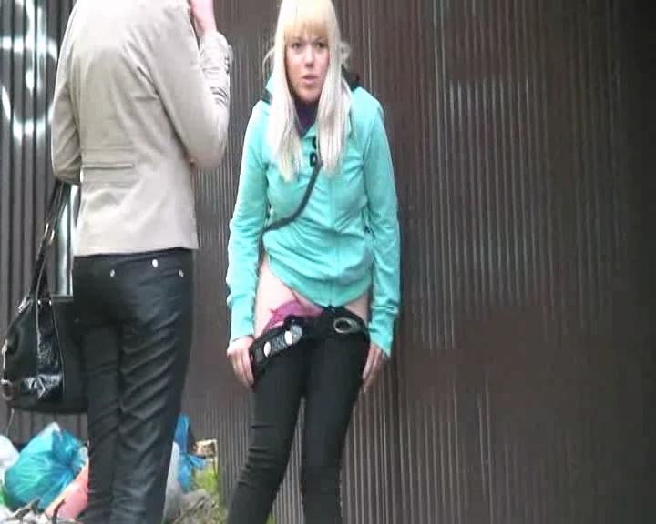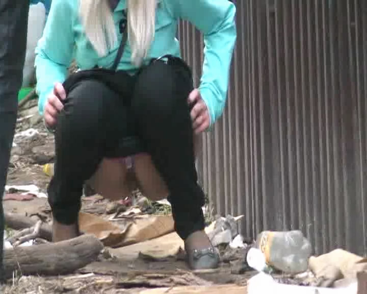 Второй не так приспичило, но писануть за гаражами она тоже не отказалась!