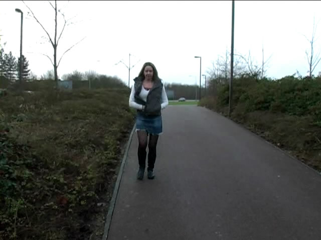 Девушка присела пописать на дороге.