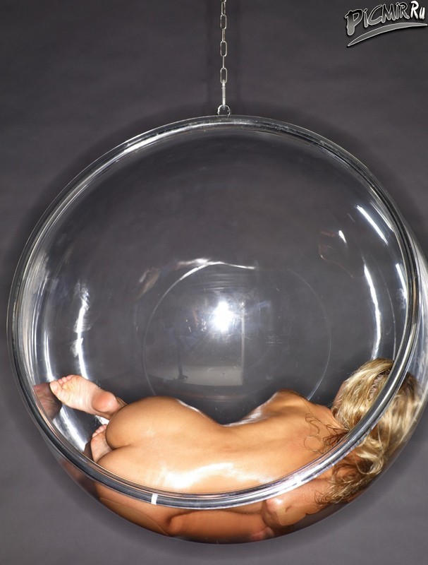 Интересное позирование намасленной девки в стеклянном полушарии!
