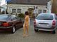 Прохожие явно подумали что эта обнажённая девка по улицам городка фланирующая из дурки сбежала!