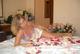 с лепестками роз на кровате позирует на теле одета белая рубашка галстук под рубашкой не чего нету интим место без волосиков даже есть фото где букет роз держит постель белая