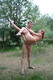 Стройная девчюшка позирует с фотографом и сама на зелёном лужку
