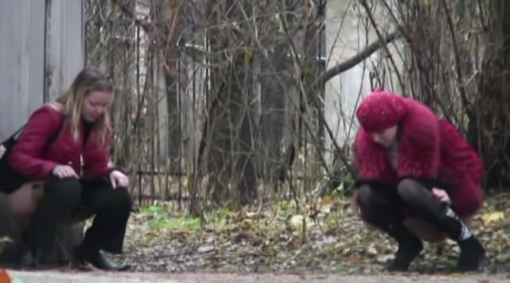 Красиво писают. Я бы подрочил на ту в колготках когда она юбку задрала и показала стринги.