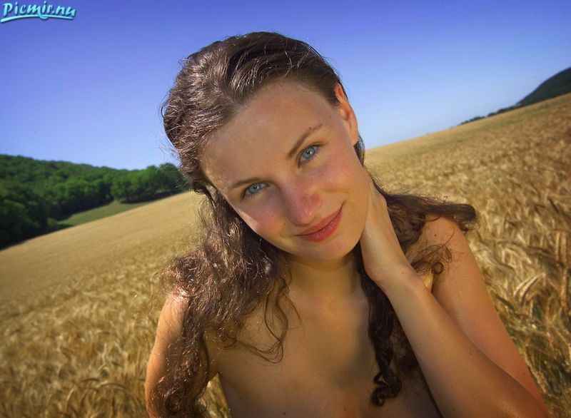Очаровала милашка своими обнажёнными сиськами в колосящемся поле позирующая!