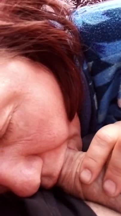 Теща старательно и с удовольствием делает минетик своему зятю!