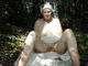 Древняя бабка устроила в лесу фотосессию на фоне русских березок.