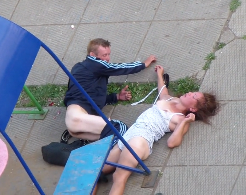 Девушка, пьяная в рубашку, не смогла дойти до дома, когда рано утром ушла из клуба. Так и увалилась спать на детскую площадку. Утром её нашёл Бомж и начал своё грязное дело. как Вы думайте, как часто у бомжа бывают молоденькие девушки, если у него даже нету денег на шкалик, не то что на шлюху.