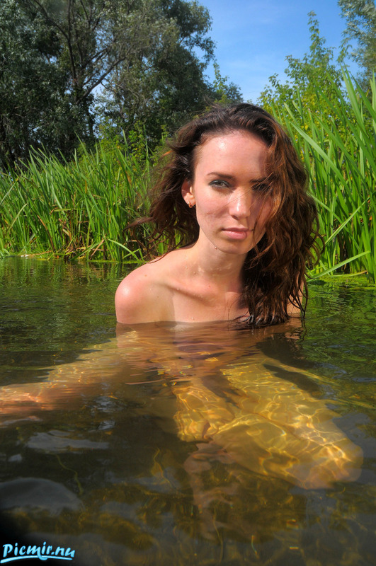Шикарное тело у этой милой самочки позирующей топлес в мелкой быстрой речушке!