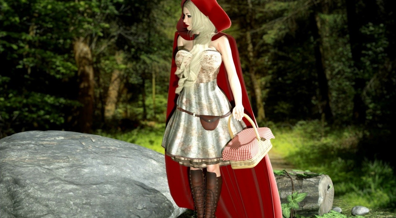 Какой сказочный лес!Какие там девочки гуляют...А уж какие волки...Только шапочки то красной там нет...только плащик...