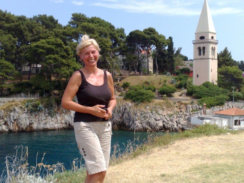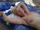 Очень приятно для глаз сия взрослая улыбчивая женщина обнажённой у моря отдыхает!