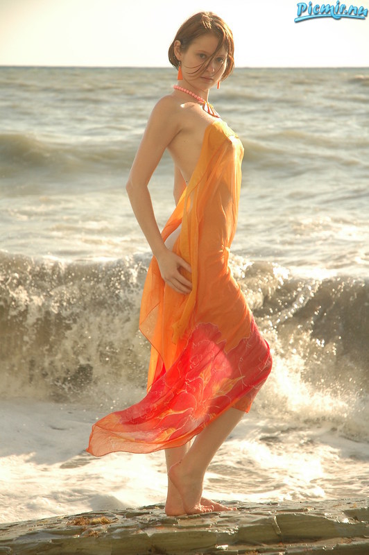Бесподобно позирует сия прелесть в парео на морском берегу!