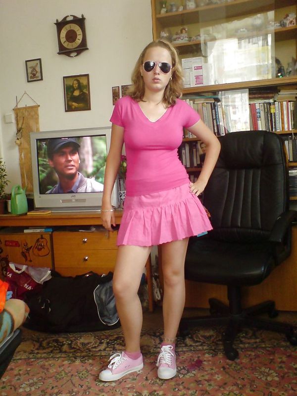 первая фотка вся в розовом и в кедах таких же ) прикольно