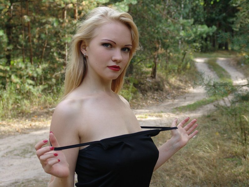 Совсем голая великолепна! Так бы член ей и вставил в лесочке!