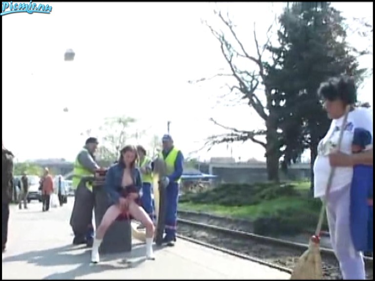 Очень смелая девочка прогуливается по перрону среди людей и по ходу демонстрирует свои прелести, особенно прикольно, когда её бабка увидела и с перепугу дала разворот на триста шестьдесят градусов. А в конце девочка пописала прямо возле охреневших ремонтников, и пошла себе дальше...