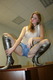 Девушка в рваных колготках и шортиках