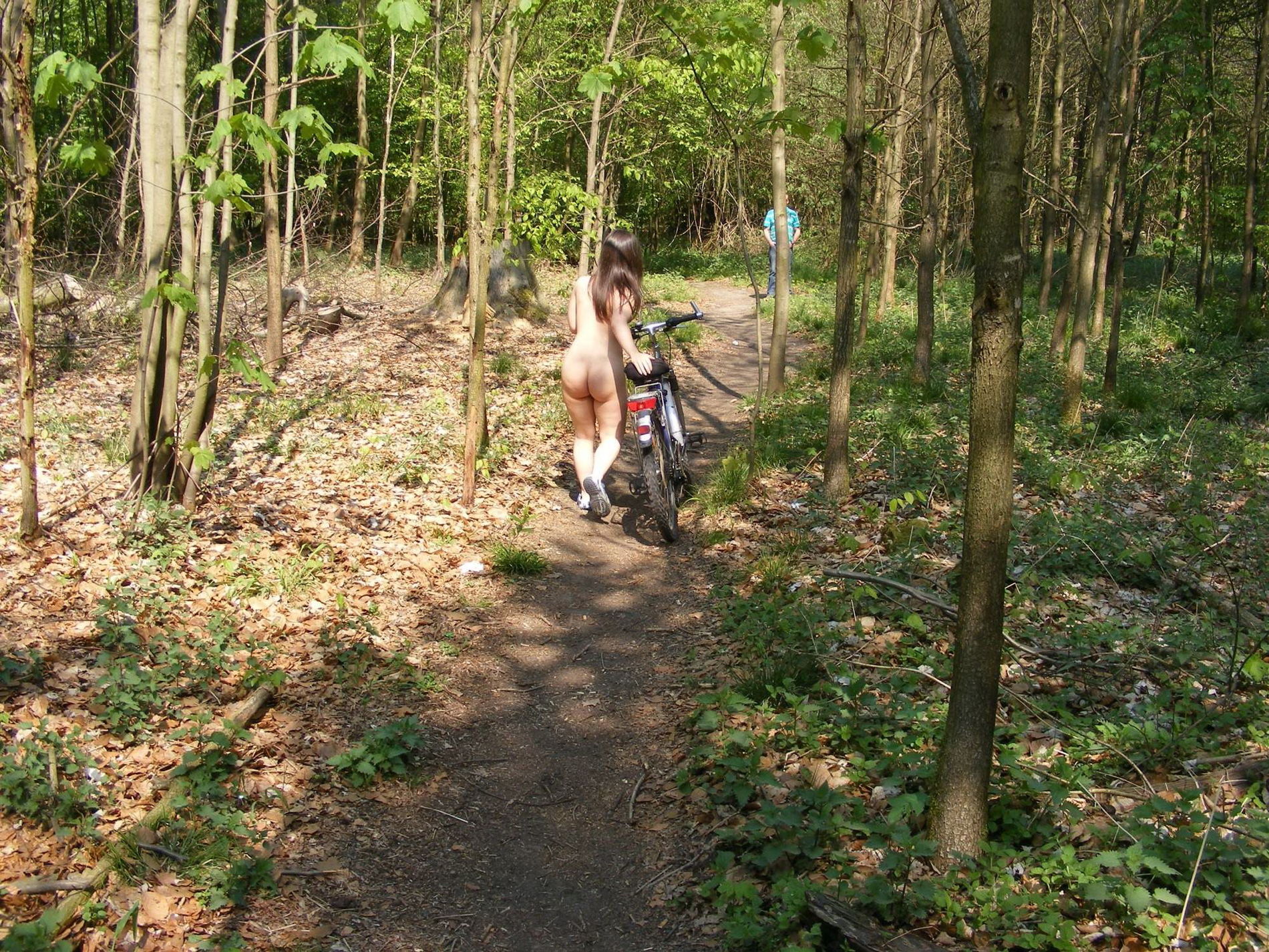 Зачётно эта похотливая велосипедистка обнажённой в лесу смотрится!