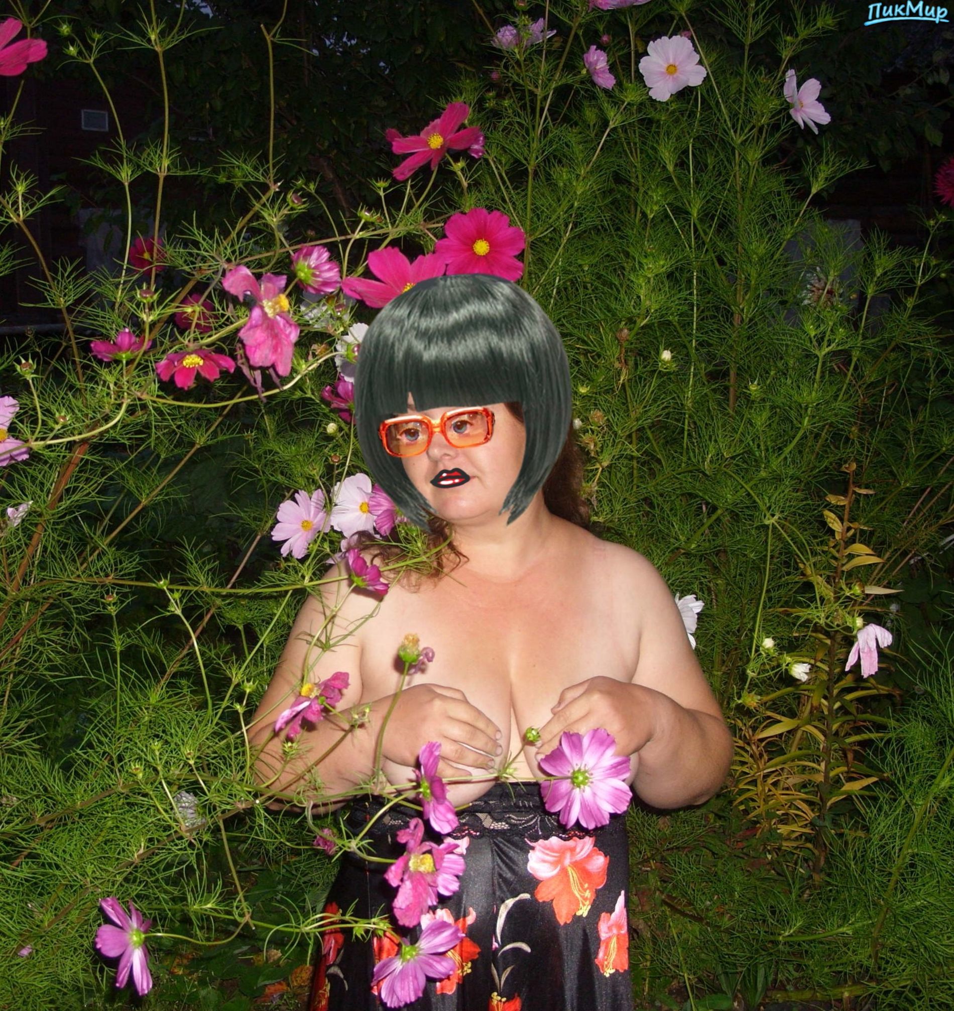 среди цветов гуляет , может сосед подсматривает