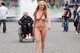 Блондинка просто гуляет по городу, привлекая к себе внимание изящным обнажённым телом.