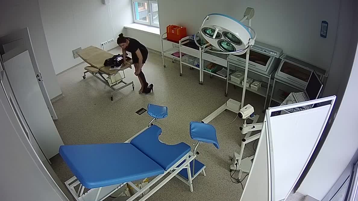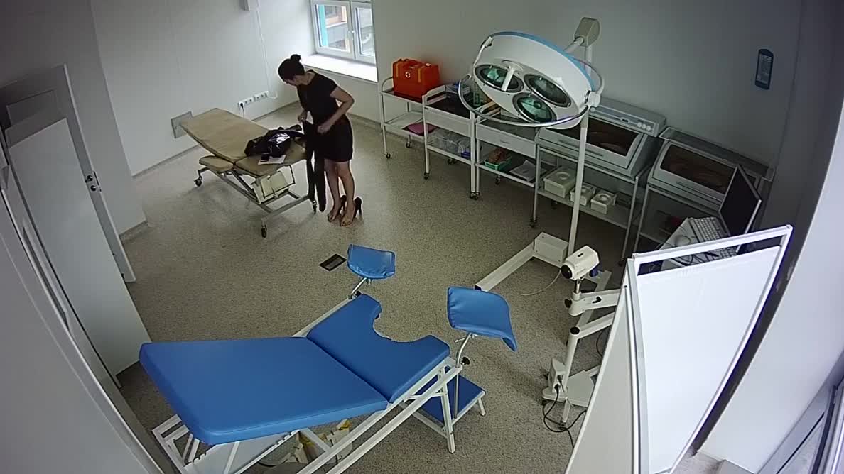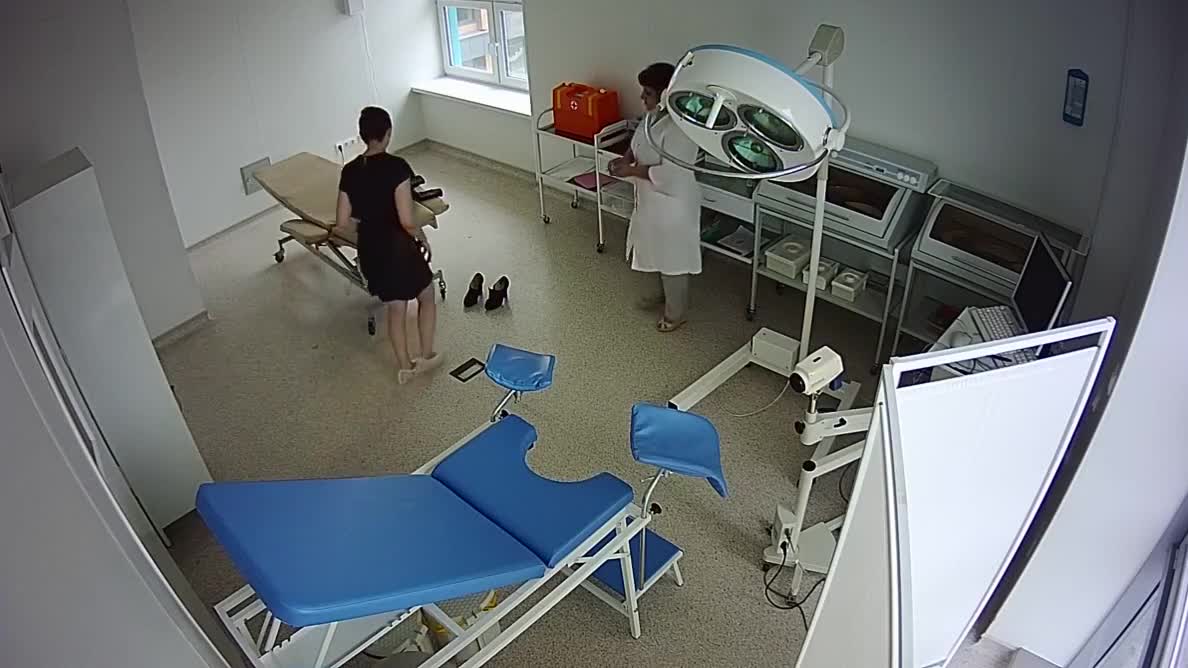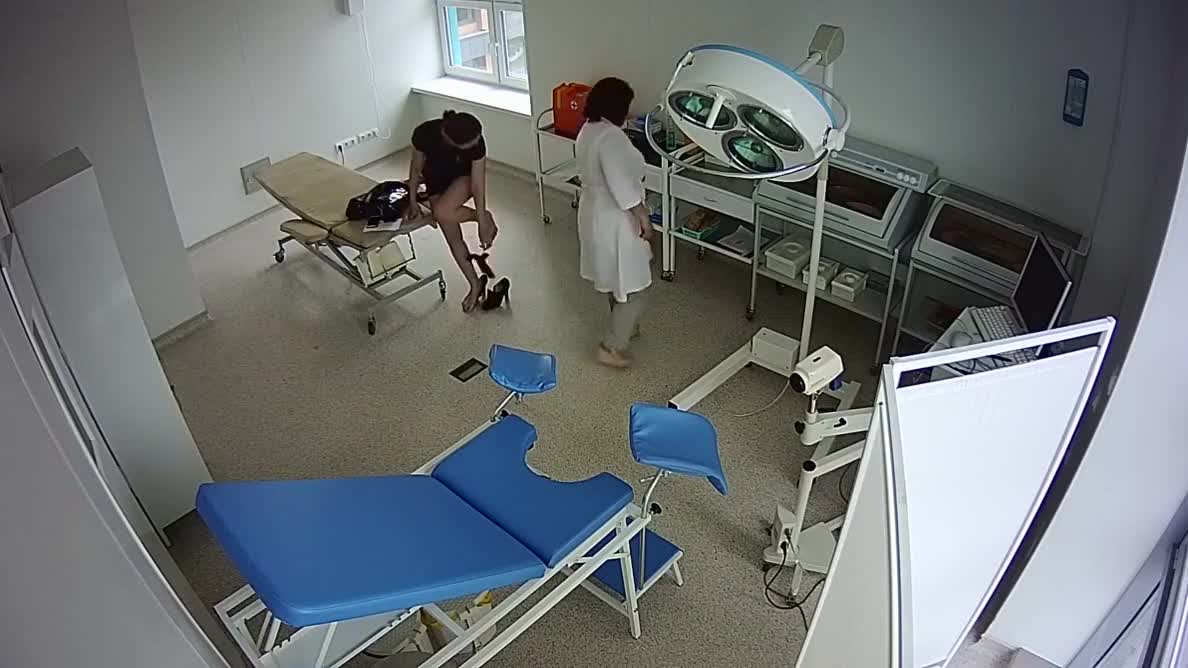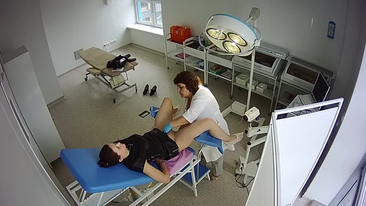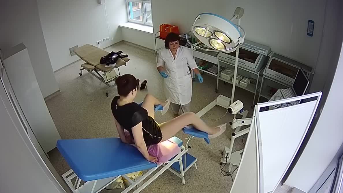 Осмотр красивой девушки на геникологическом кресле в поликлинике.Процедуру снимает скрытая камера.