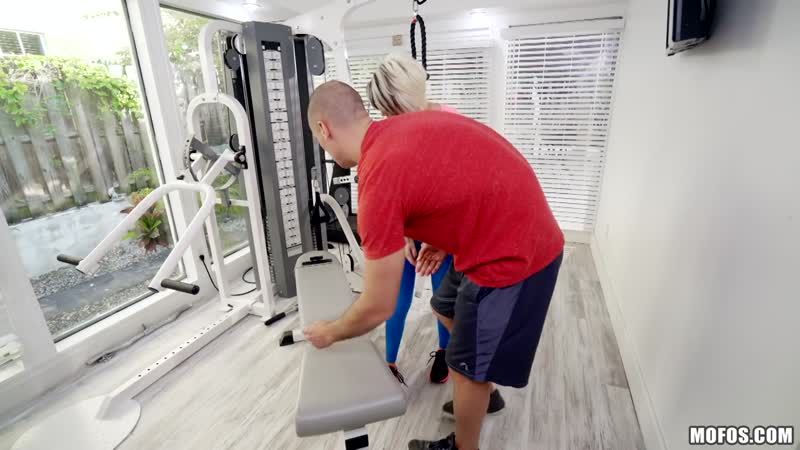 Чел с большим членом трахает молодую подружку в собственном, уютном тренажерном зале. А ей все таки не интересно было заниматься спортом - ей хотелось поскорее достать его большой бритый член и взять под контроль. Вот она и возьмет, делая отличный минет нуждающемуся пацану, после чего Вы увидите сцену вагинального совокупления, где смена позиций возможна благодаря тем тренажерным снарядам, которые там находились. Приятный трах закончится камшотом на лицо крашенной девки, которая стала на колени и смирно ждала свою сладкую сперму.