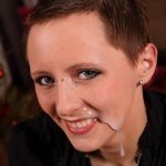 Девушка старательно сосёт вкусный член и получает сперму на лицо