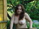 Очень аппетитной выглядит эта полная девушка топлес у себя на даче!