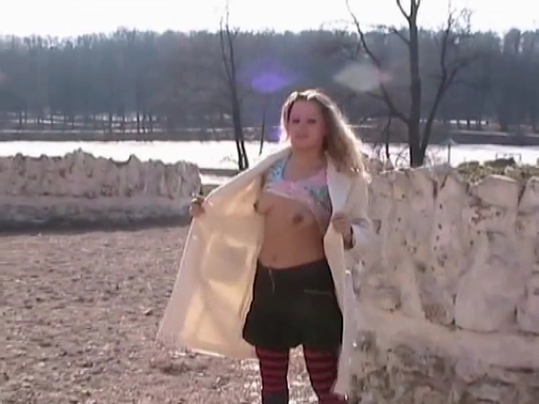 Девочка на фоне камня демонстрирует свои прелести принимая всякие заманчивые позы...