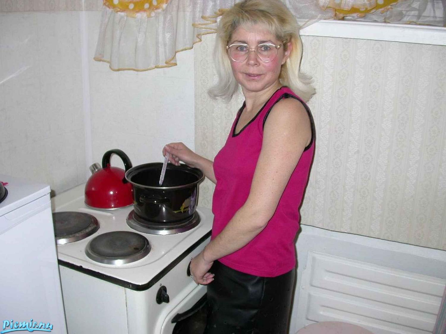 Развратная женщина на кухне