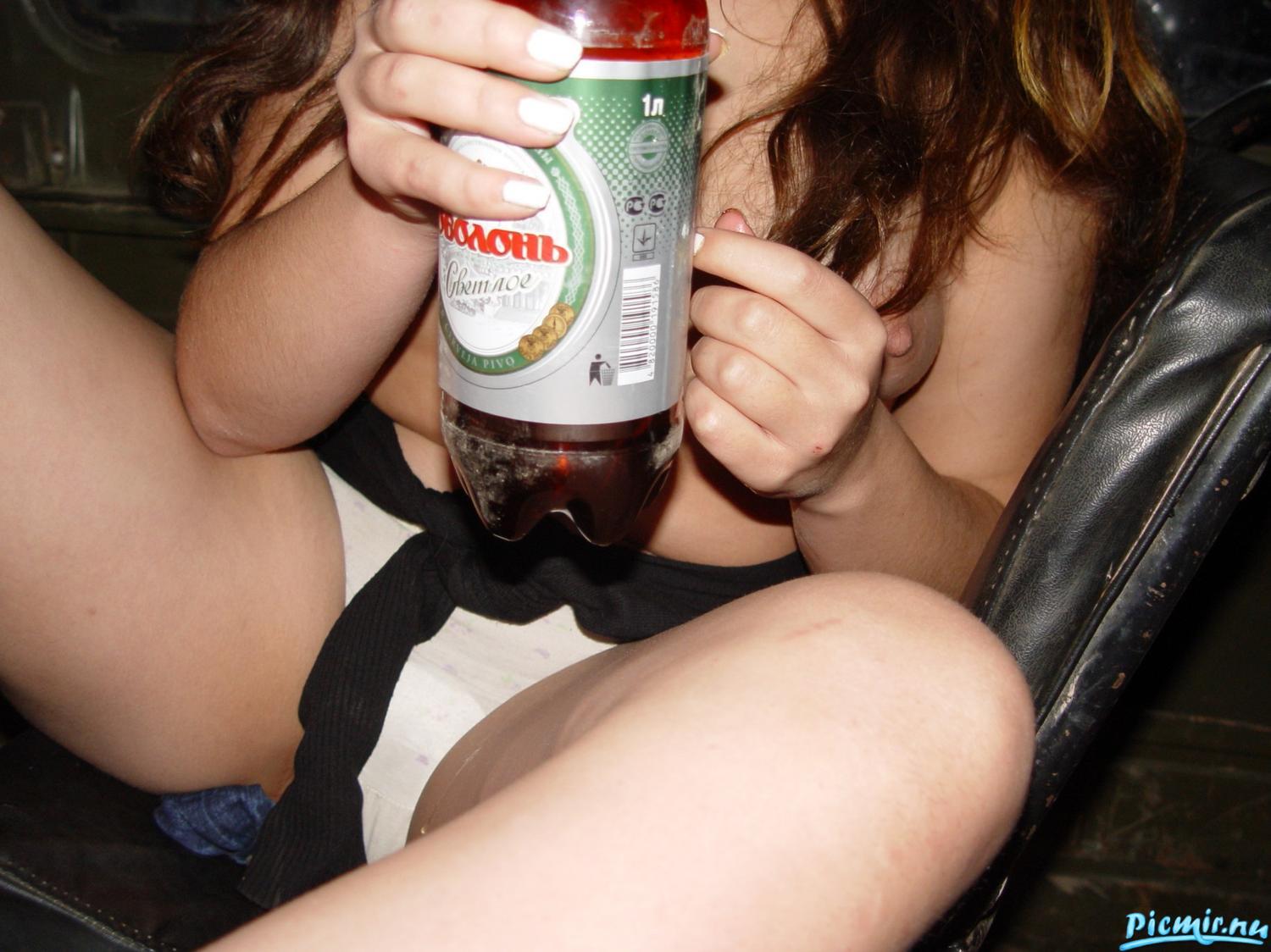 ксюша с пивом позирует в уазике