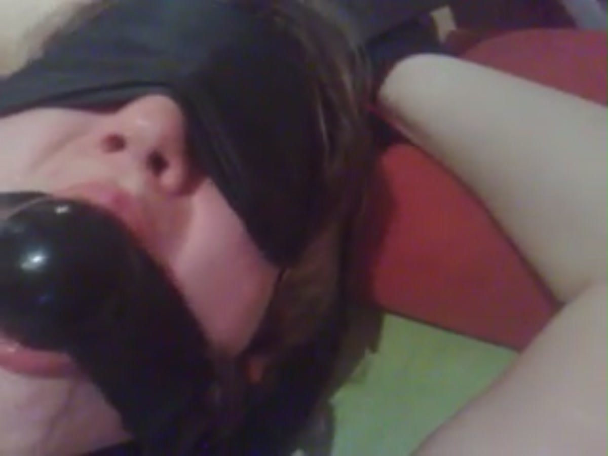 Муж связал жене руки и ноги,одел повязку и заткнул кляпом рот. После чего снял на камеру как трахает её в киску и в рот большим искусственным членом и рукой.