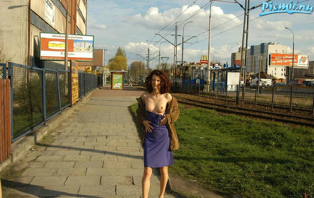 в синем платье и с волосатой киской решила немного прогуляться по городу да показать свои прелести но зрителям посмотреть так и не удалось только с зади её все и видели
