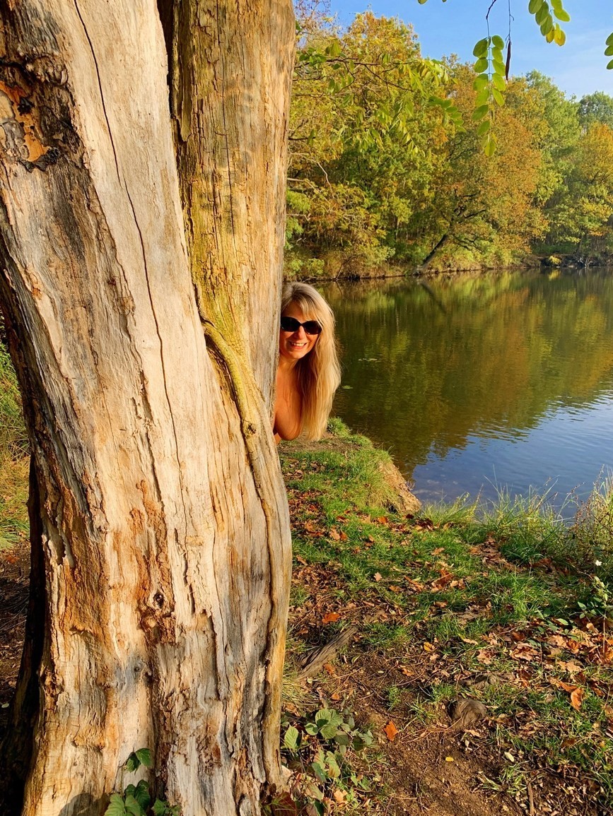 Сладкая блондинка Сьюзи обнажилась в черных кожаных сапогах у озера