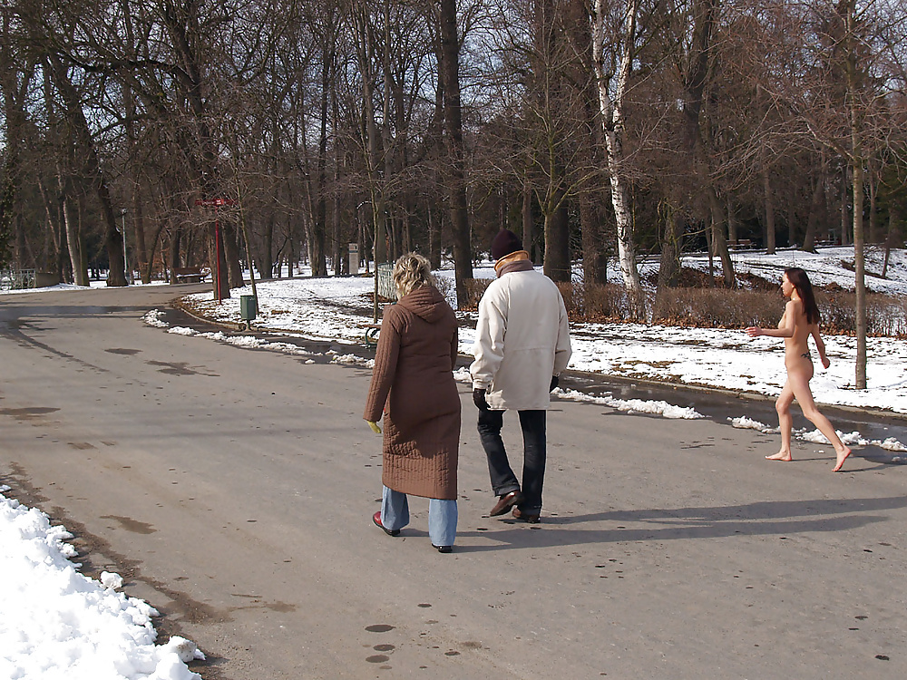 обнажённая брюнетка гуляет общаясь и помогая окружающим!