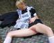 Эта зрелая блондинка очень любит ублажать партнера нарядившись школьницой. И позирует в этом наряде на природе и дома.