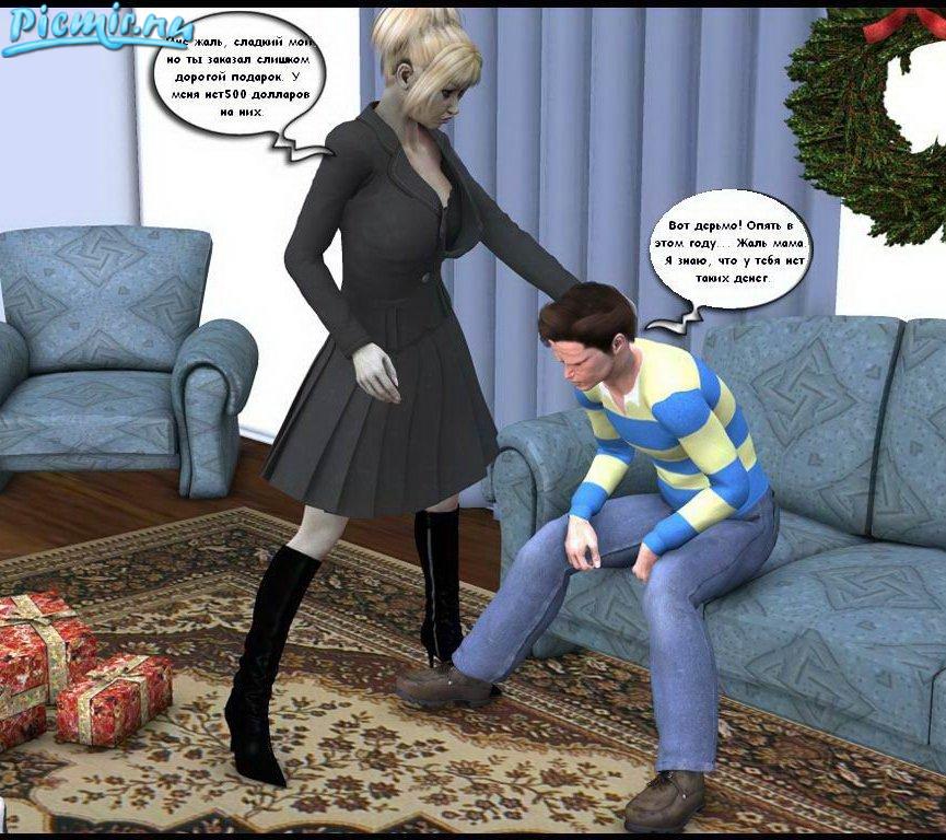 довольно сексуальная мамочка решила сделать своему взрослому сыну-подарок,достойный его,потому как он вышел из того возраста,когда дарят игрушки,кульки и прочую чушь,потому как у мамочки самой видать спереди что-то зачесалось