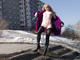 Красотка прогуливается не боясь холода и прохожих, показывая великолепное тело