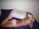 Небольшой домашний стриптиз от блондиночки. У неё просто очаровательные бусики