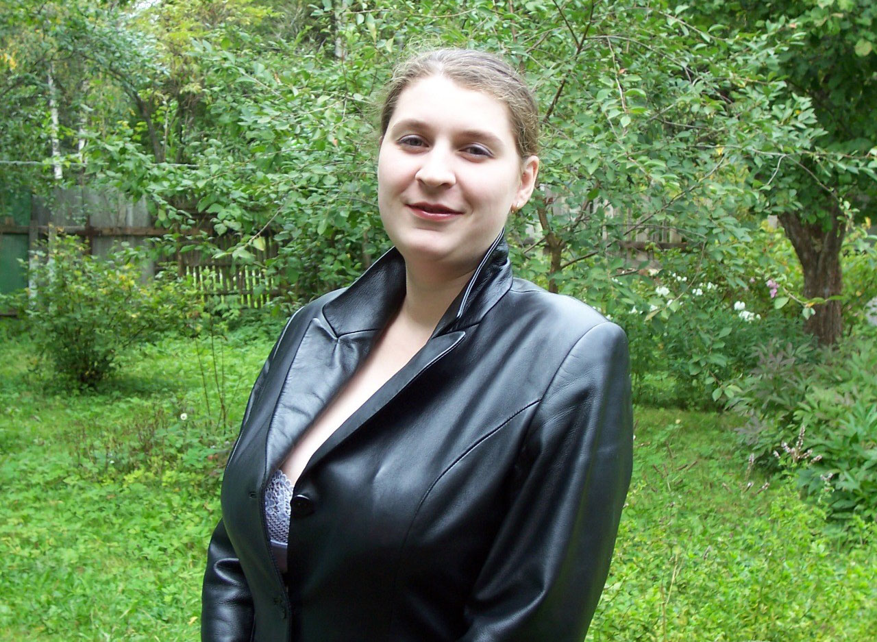 Аппетитная пышка позирует на загородном участке несмотря на не самую летнюю погоду