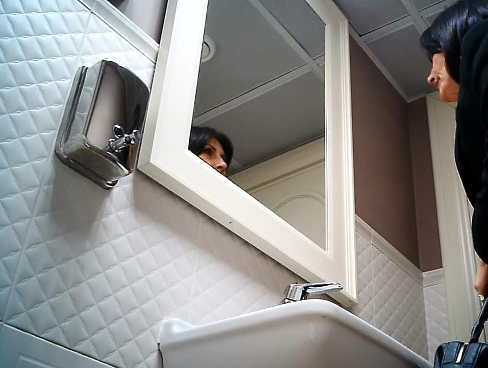 не молодая мадам в туалете