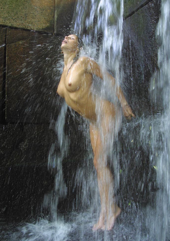 Голая у водопада