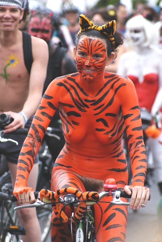 Парад нудистов на велосипедах. Смелые и веселые люди )