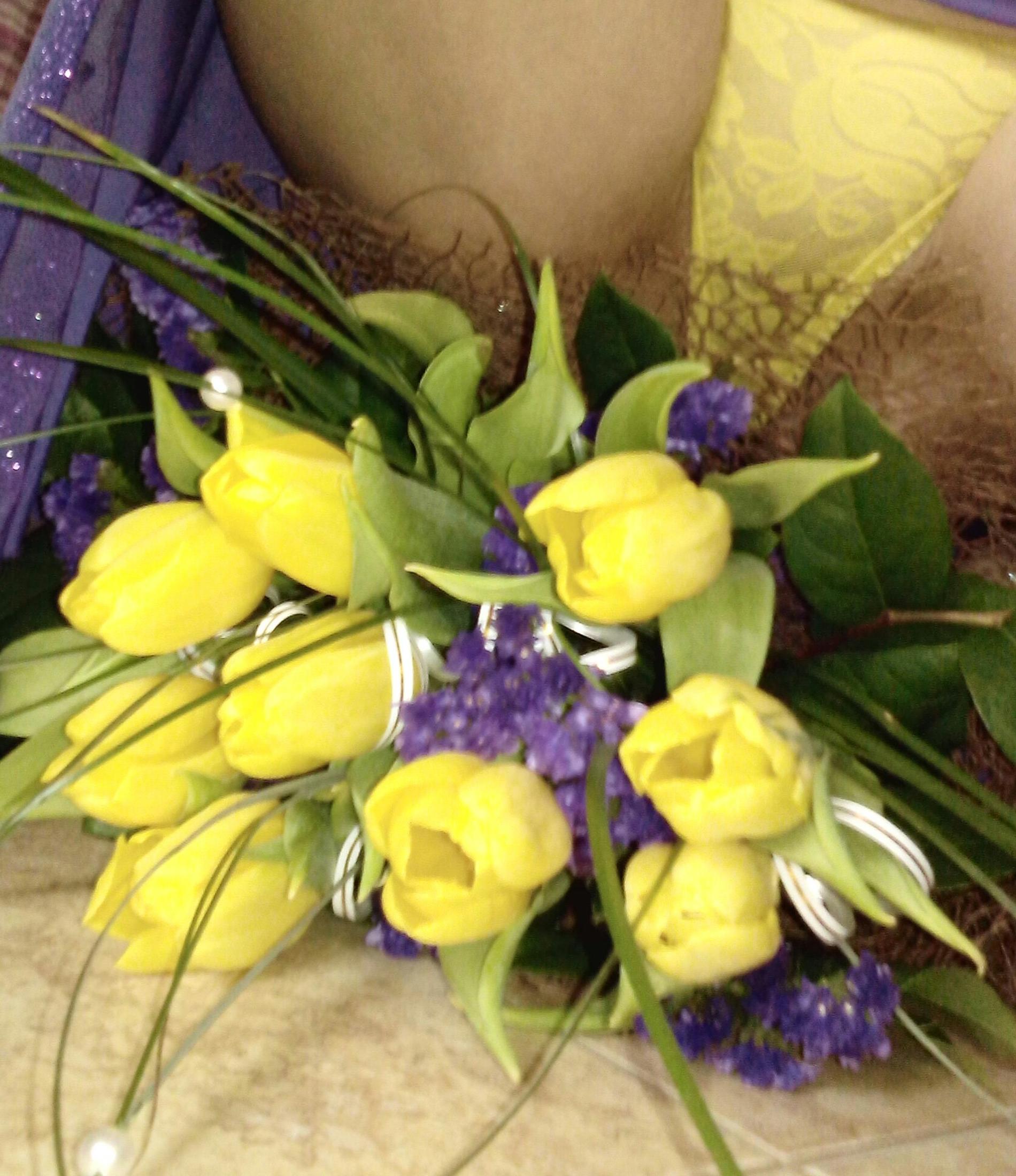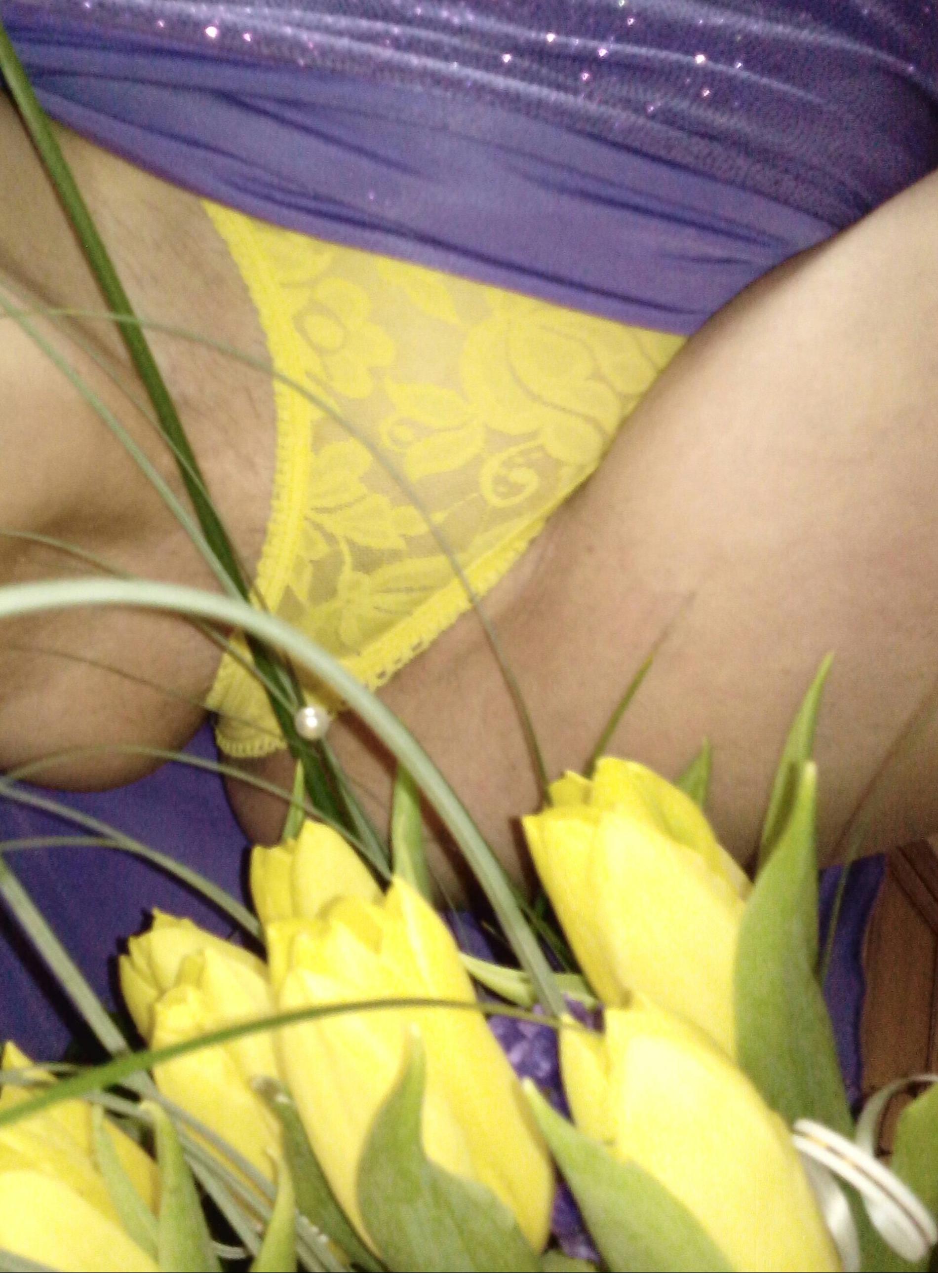 Ее красивые желтые трусики явно гармонируют с желтыми тюльпанами!