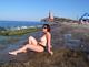 Зрелая шатенка с прекрасной фигурой и впечатляющей грудью позирует на отдыхе.