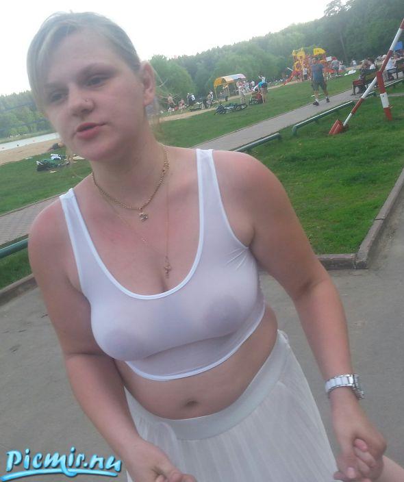 Классный прозрачный топик и отсутствие трусиков. Красота!