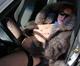 Продолжение фоток шатенки с большой грудью. Теперь она позирует в машине.