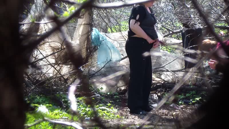 Пышка писает в кустиках