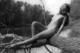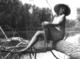 Черно-белые фотографии летнего отдыха стройной милой девушки.