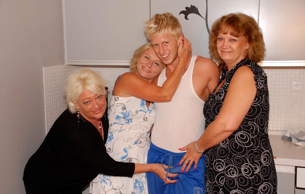 Три зрелых , но горячих красотки преподали практический урок секса молодому блондину